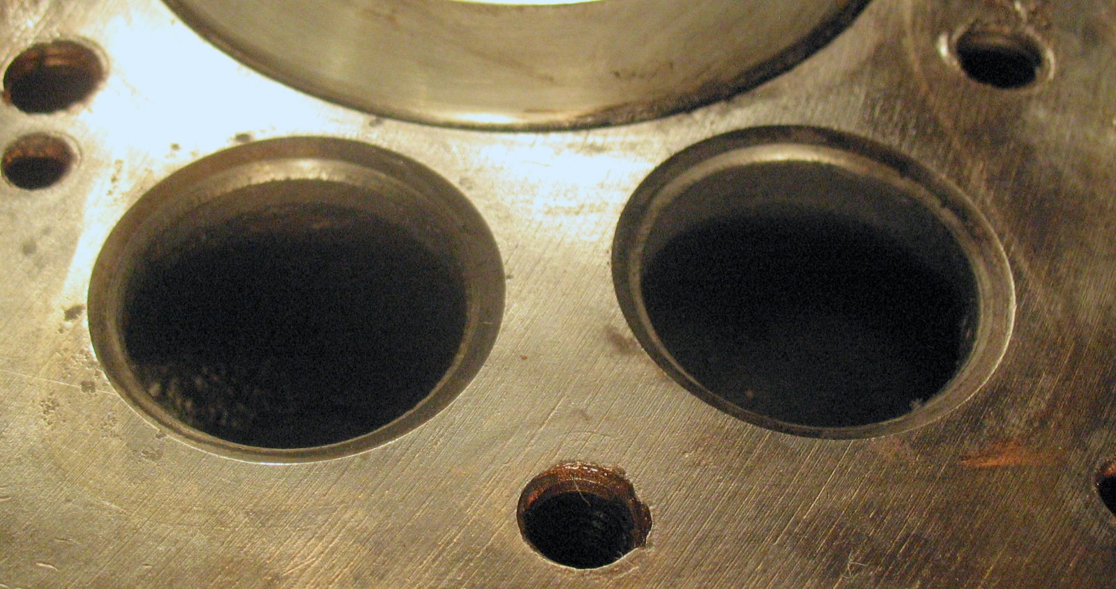 OK, I don't know if the pictures are good enough to show anything, but here are the valve seats. There are two shots at each cylinder, one from straight above and one from the side.