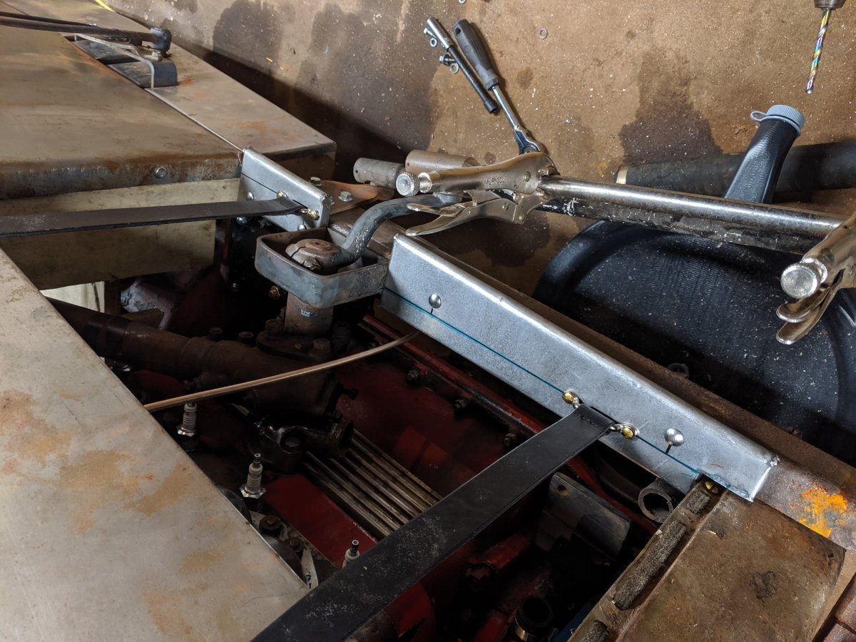 I then made a toggle lever to weld to the hand operated service brake cross shaft. I will make a rod to link this to the foot brake. That way I can use the foot brake for practicality, or hand brake for the true racer feel.