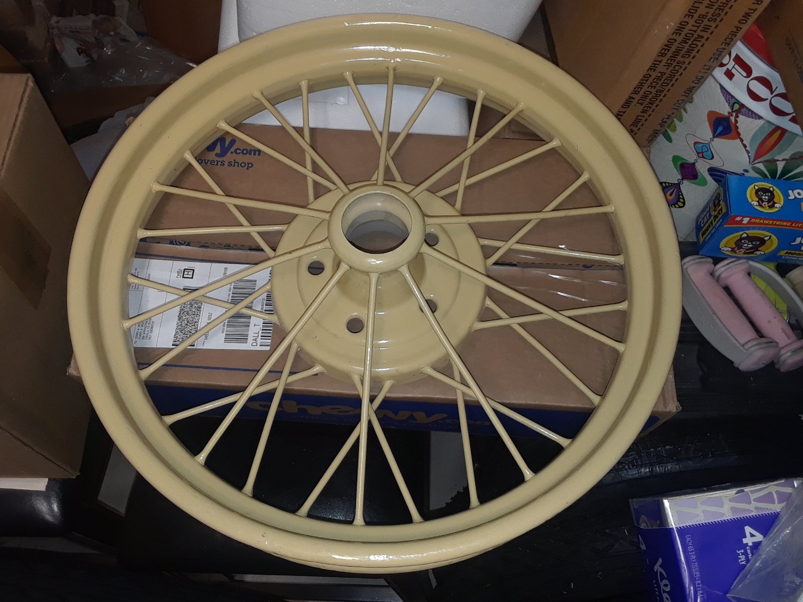 Powder Coating in Houston, using a color called 'straw'. Most of the Model A and T people with wire wheels, use them.