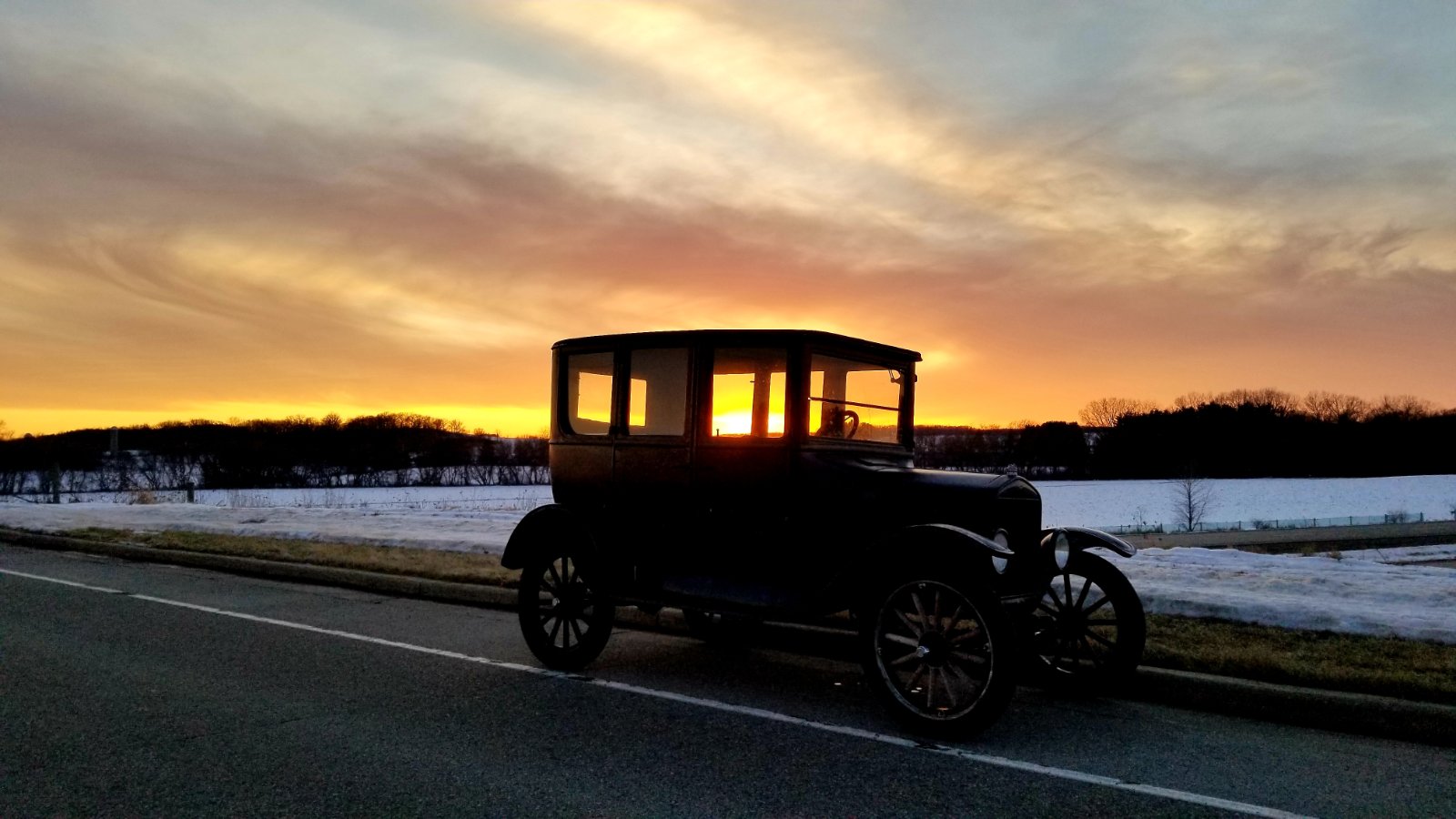 Great photos John. The Fordor makes a wonderful silhouette against the colors.