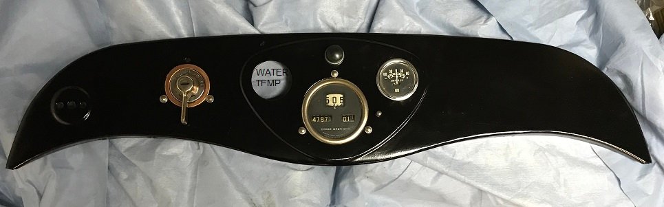 Planning to be a bit unorthodox on my speedster too, still planning and parts gathering. The dash is a 1926 Dodge, I liked the layout but more important is the top curve which I'm after for the body. Intending to add a SW water temp gauge in the open hole. Just got the switch and had to find a spacer (copper will nickle plate it later) to fill the gap. Ill cut out a Model T amp bezel to fit over the switch and use hex headed bolts from the front side. The amp and water temp gauges held in place with a hose clamps unless the u-brackets that come with them work. Refurbishing several NorthEast speedometers will be using a REO face-plate when done. Need to see the back of the switch. Chances are you may be able to replace parts with what suppliers have for Model T's.