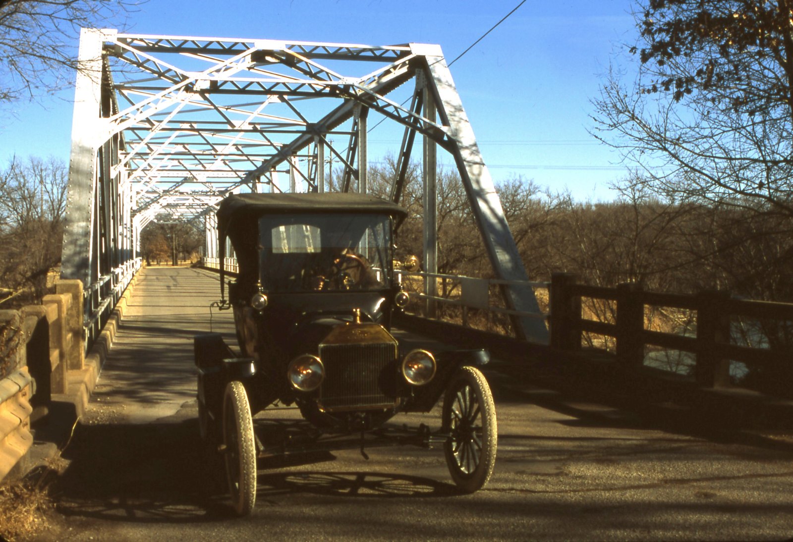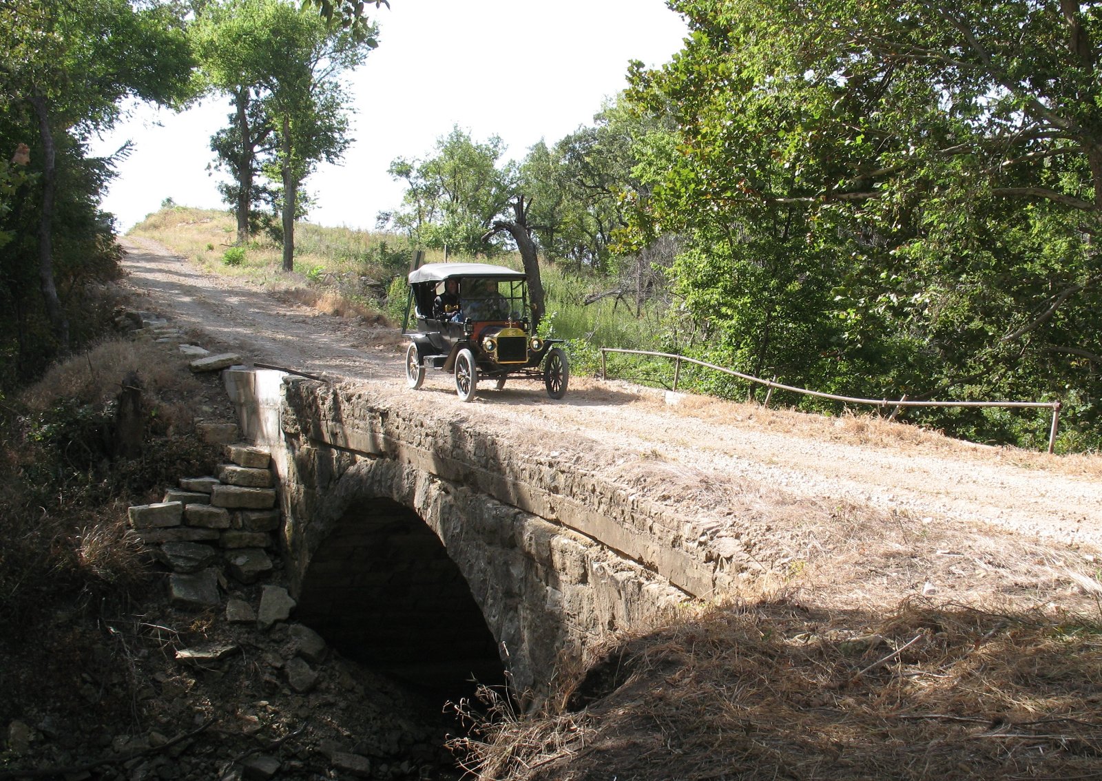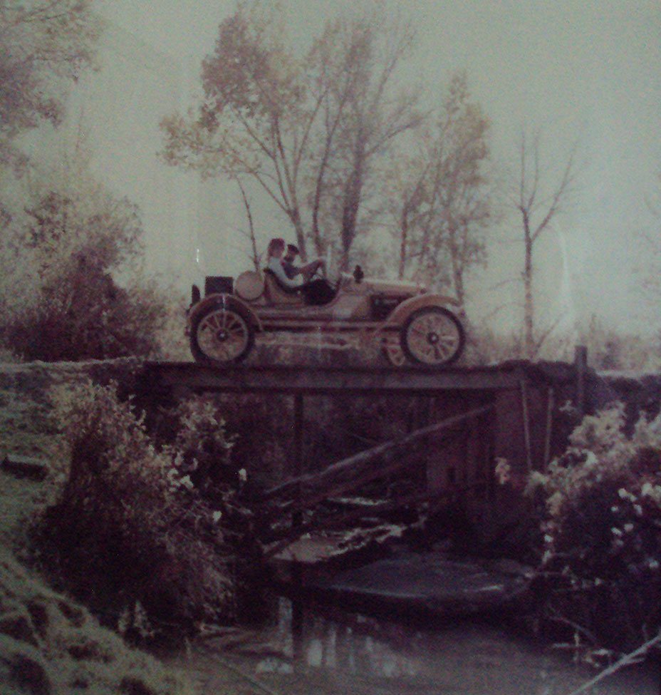 Today another stone arch bridge. This one is on Timber Creek at Floral, with Ed Emerson crossing in his 1926 touring.