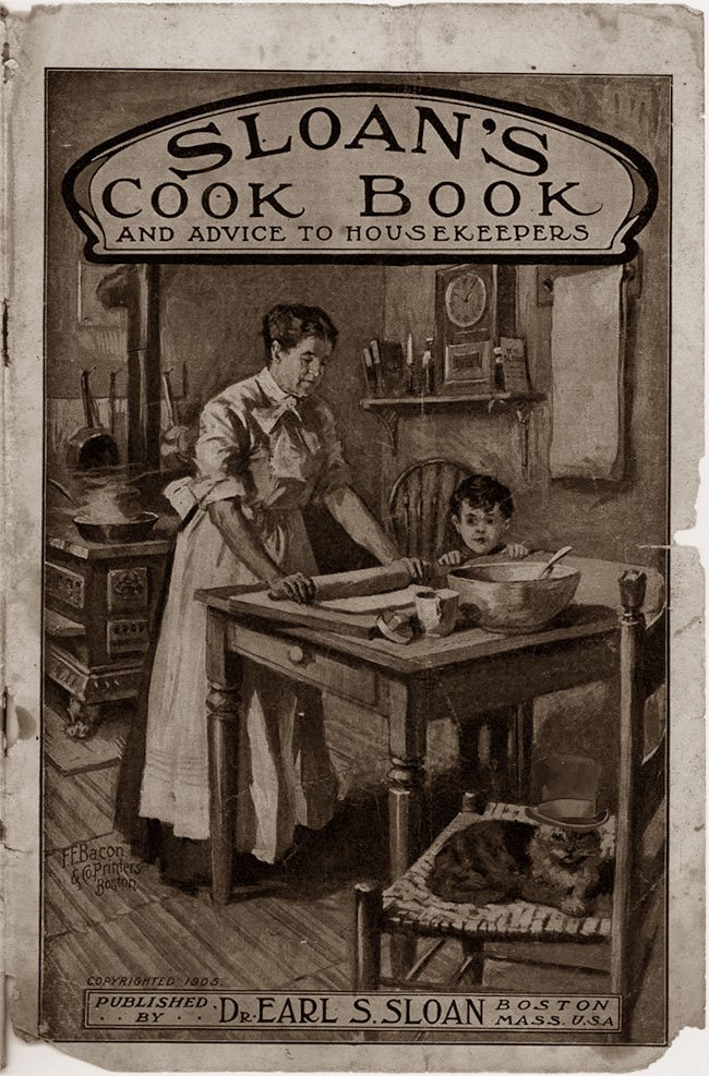 Dallas, it’s interesting to read these old manuals and note the close relationship folks had with their horses in those pre-automotive days. Sloan’s Liniment was often touted as “good for man and beast”. Some recipes in the cookbook were obviously intended to appeal to the family equines, specifically: “oatmeal oats” and “alfalfa surprise”.