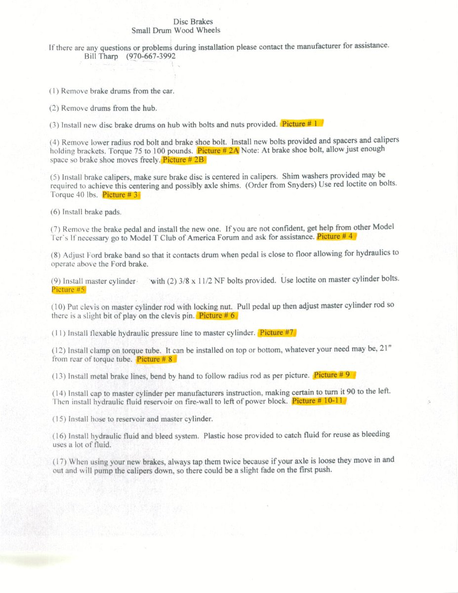Tharp/Texas T disc barakes advice and Tips by Steve Blancard on Sunday, August 26, 2012 - 07:07 am: I'm in the process of installing a Tharp disc brake kit on my '24 touring. I thought it would be beneficial to start an advice and tips thread where folks who have installed these brakes can share their lessons learned. I've been following the "Bleeding Texas T brakes" thread, but didn't want to hijack it for this expanded discussion. I'm about half way through the install and have printed out the Texas T instructions which I am using along with the original Tharp supplied instructions. The Texas T instructions are more detailed, but there is good info in both. Please chime in with your advice and tips to make installing these brakes go smoothly for everyone's benefit.