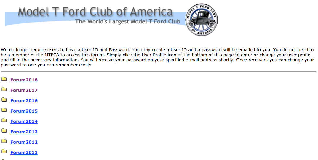 It's there sometimes for me. By that, sometimes I see the link and sometimes I don't. I think, when I see it, I click all the way back to the main home screen.Skyler Kimball wrote: ↑Tue Jan 08, 2019 7:17 pmWhen will the 2019 forum link be put up on the MTFCA Forum Page?