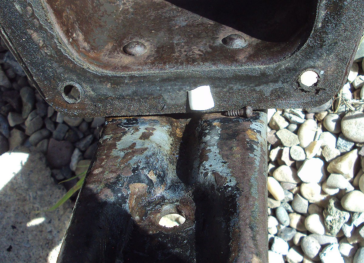 It doesn't take much to amuse me. My air nozzle blew these two items out from between the crankcase and arm yesterday. Though I believe I have used this crankcase on various vehicles since 1970 I don't think I placed them there. I have lost coil box screws before but not while in the car. The insulator piece suggests a horrible accident. That is a location where things often hide. The monotony of cleaning leads my imagination to stories of what leads to these things. These may have been caked in hardened grease for years before fresh, leaking oil soften it enough for these to reemerge.