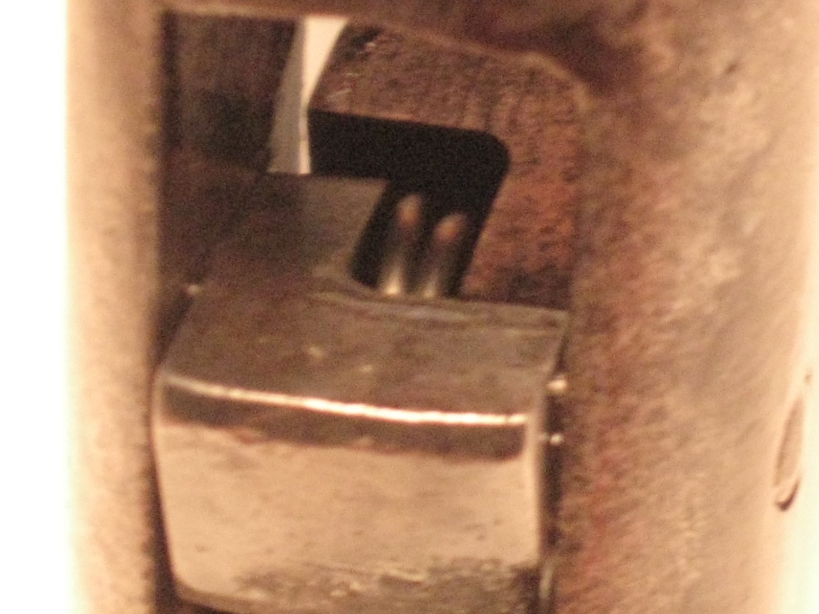 The new spring, looks good and fits well sorta, I just made one mistake; I knew that it had to be a Left-Hand torsion spring, but I wound it Right-Hand. Simply, I was not paying attention. A simple mistake that was overcome on the next one. Unfortunately, I did not take a photo of the spring before I installed it and put the tool back together. I was just busy on fixing it. These photos show the spring in place and the tool back together.