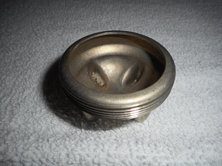 In the stamped brass caps. I would tend to think the two pictured by Rich B are earlier versions. While they are different, both have the smooth transition from the threads to a gentler dome than the much more common plated caps that came later. The second picture posted has the lower fins. The fins barely rise above the dome. Pure speculation on my part, I would think that one may be the earliest version of the stamped radiator caps. My reasoning is simply that this cap is more different than anything that came later. I am not sure but that one of the caps I have the fins don't rise quite even that much.