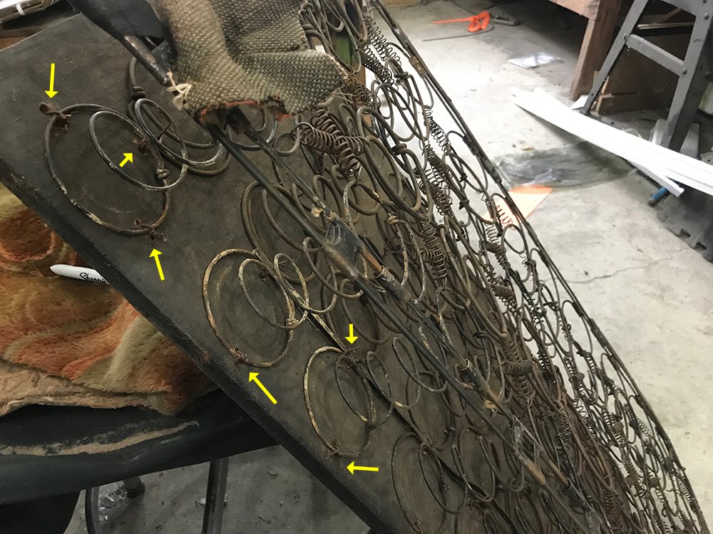The current rear spring is missing the top frame and is a mix of coils as it is. I think someone cobbled it together many years ago. Looking at it more closely I think the top frame is missing and the previous owner flipped it upside down and wired the top of the coils to a board. It worked but there is no way I can justify covering it with new upholstery and putting it back in the car.