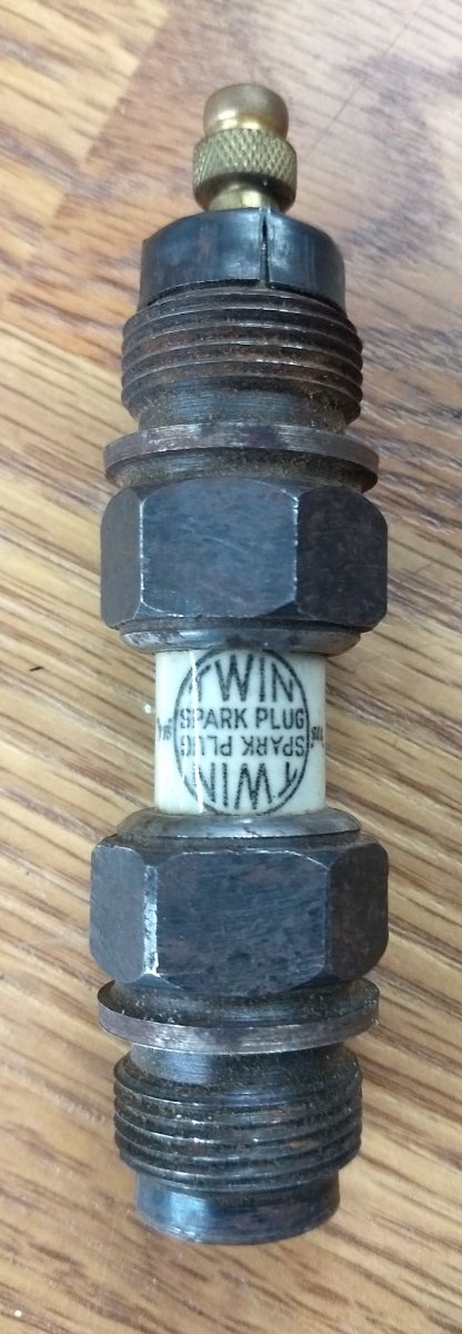 Thanks for posting - I've collected plugs a long time and have several varieties of those double ended plugs in my collection. They are oddities for sure and are sought after by plug collectors. Here is an example of a very early one with a mica window in the removable cap. It's done that way so you can actually see the spark jump. Theoretically when the spark jumps an air gap, it actually intensifies the spark. Supposedly that would help burn off any deposits. Looks like it's in pretty nice condition with the original cap.