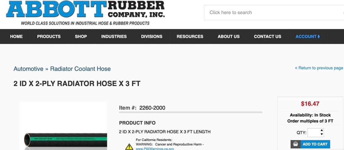 TWO INCH ID TOP HOSE. Sorry. bobt