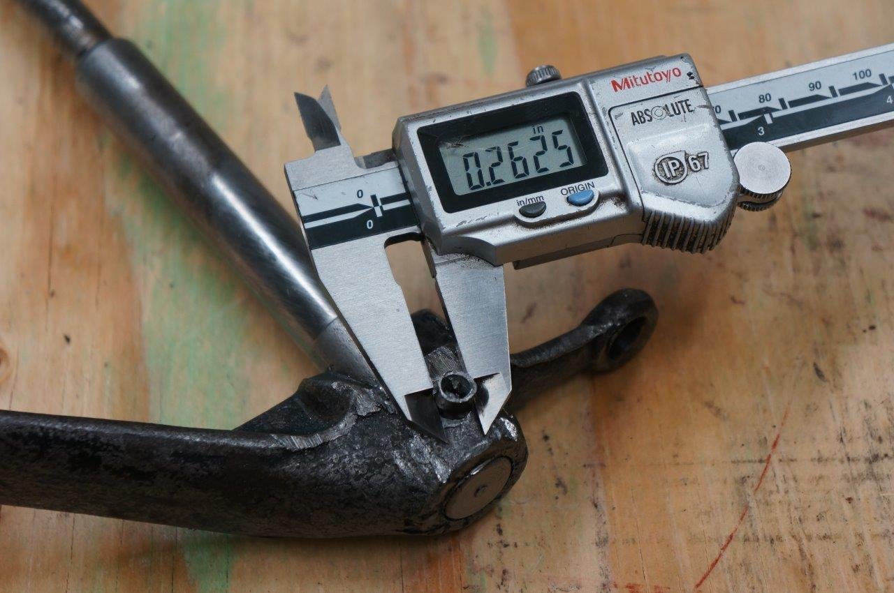 The clutch pedal on my 26 has excessive wear on the cam. I'm building up the surface with weld and then filing it to shape.