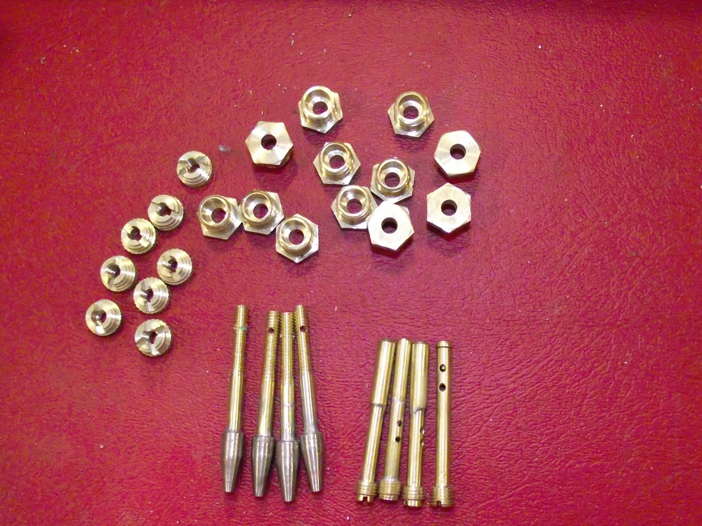 Been working all morning on getting some of these ready for assembly. Already had them bead blasted and passages drilled, just polished most of them, te-tapped all the threaded holes, resurfaced all the mating surfaces including where the seat screws into the bottom of the bowl which is almost always a mess, where all the caps screw in, internal threads where the main jet screws in, etc. Some of them I get in have been drilled out so 3/8 studs won't work or the threads are too bad to use so I have a jig to drill them out, thread them with 1/2 x 24 threaded brass stock, with silver solder to hold it in, have a drilling jig to drill the holes and thread them 3/8 - 16 so they are correct for an OF. Most of the flanges are bent to some extent so I run those through a process to flatten them so they don't leak air around the flange. They will all get bushings for the throttle shaft, too, I need to make a whole pile of bushings before I get much further.