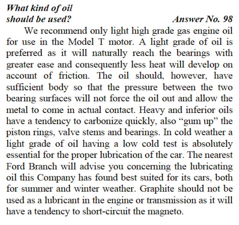 What is "light" or "medium light" engine oil? Those are old terms for 20W. But a modern multigrade (5W-20) is not the same. Some of today's T experts who drive long distances use 15W-40 and 20W-50.
