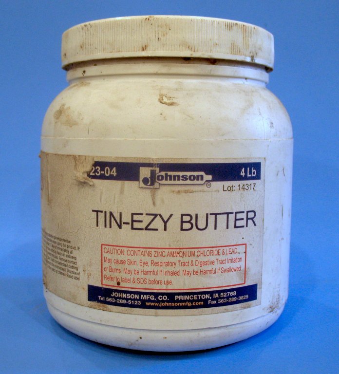 Can you elaborate on what exactly "tinning butter" is? I have used rosin core solder, which is made for electrical connections, there is also acid core solder, which is NOT for electrical, there is the grease-like soldering paste which I use for soldered, non-electrical assemblies and there are the fluxes used for auto body work, like Ruby Red. Are any of the above considered tinning butter? BTW, I don't see where you ever stated what you used.