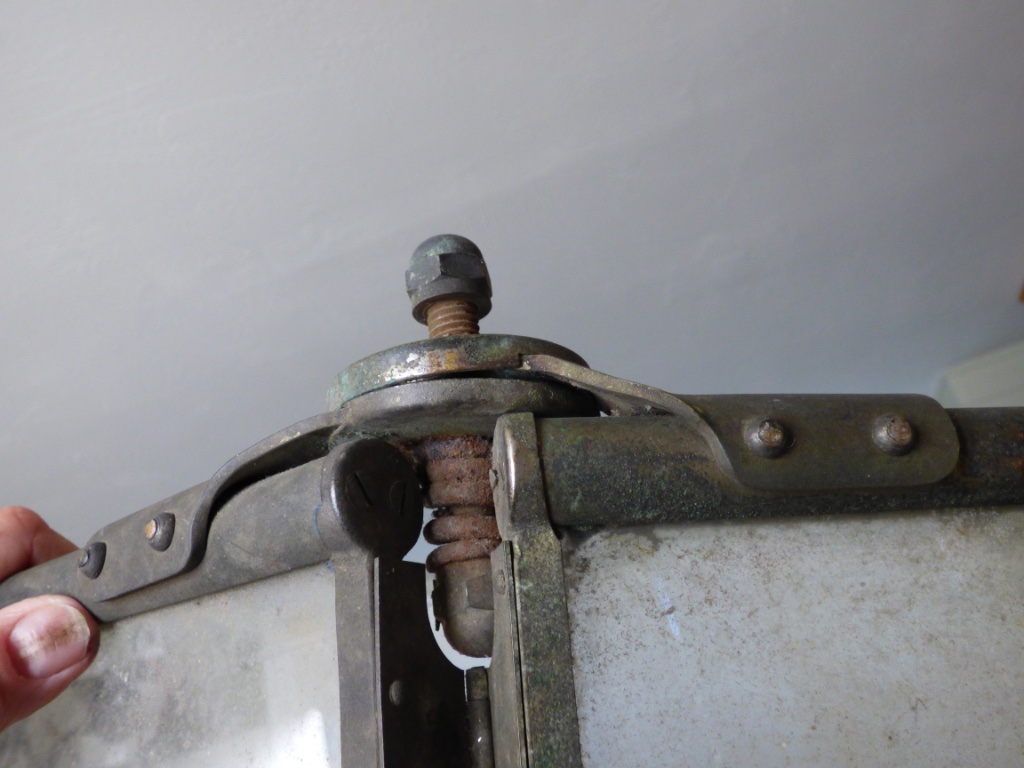 Here is another, don't know mfg., but sketch was in Automobile in the early 'teens m, article on type of 'automatic' folding windshields, and shows a similar disc method, but with leather for friction.