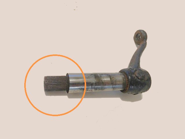 To confirm that we had installed the Hub Brake Cam Lever correctly, I crawled under my '26 Pickup to take a look. Man, was I surprised that my shaft was not totally in the hub. It was only held in place by the brake rod that goes to the front. When I pulled the clevis that shaft was easily pulled out, but the cam itself was not there- it was still inside the hub. As you can see, the end of the shaft is splined, so I assume the cam itself is splined too. I have never run into this type of splined Hub Brake Cam assy before.