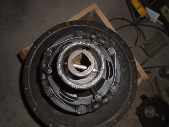 Key between main shaft and clutch drum failed and clutch drum spinning on main shaft.