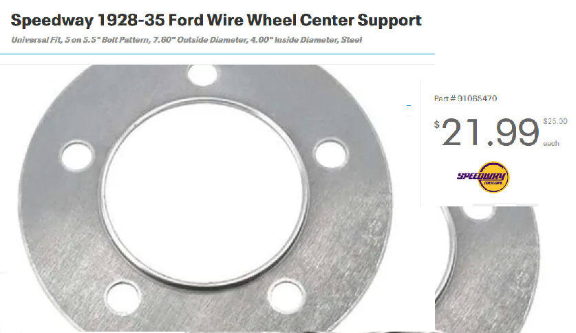 Lang's sells solid steel '27-27 hubs for wire wheels so someone has the specs. The T bolt pattern is 5 on 5" and the A pattern is 5 on 5-1/2". Speedway has several "adapters" for A wire wheels. Take a look at this link it may give you some ideas. https://www.speedwaymotors.com/the-tool ... 1935/28813Speedster Jeff wrote: ↑Fri Aug 06, 2021 11:53 amSo I have scoured the net looking for hub drawings and am surprised that there isn't any drawings out there. I have the 26/27 hubs that a friend gave me and I need to look them over, but I am really leaning towards just machining new steel hubs since we have the facilities to do so. I just don't like the idea of a ring under the 26/27 hubs being bolted on under the wheel and the wheel bolts to the ring. Any feedback would be appreciated since I am new to this vehicle. Thank you.