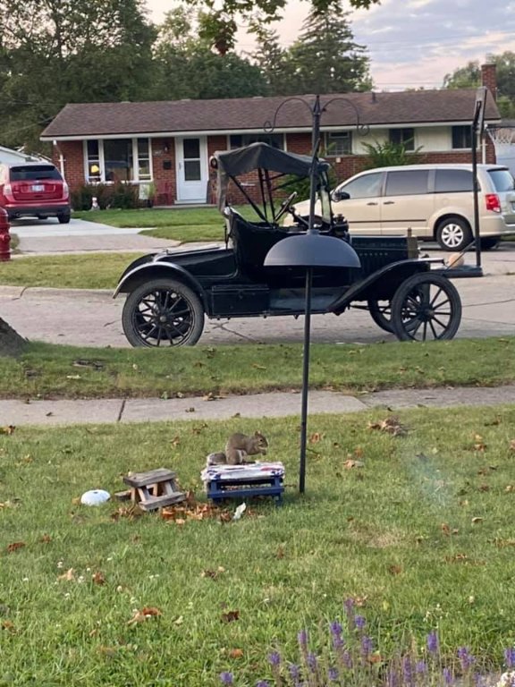 Oh Man! Rearrange those chicken bones on the baseboard quick..., Someone turned Steve into a squirrel! He will never be able to reach the pedals unless he gets some more squirrel friends!!!!!!