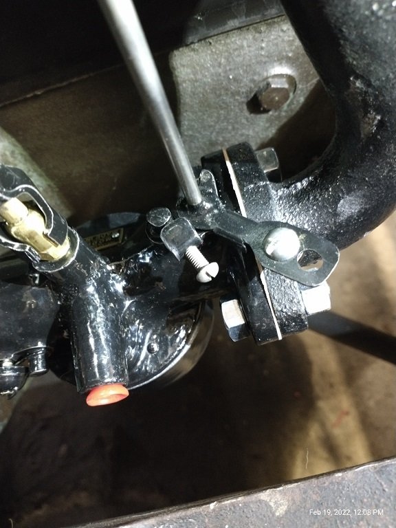 The throttle lever rod has the means to connect a linkage for the thru-block method, but my block does not have the hole. Looks like someone welded on the higher lever for the over-the-top vaporizer.