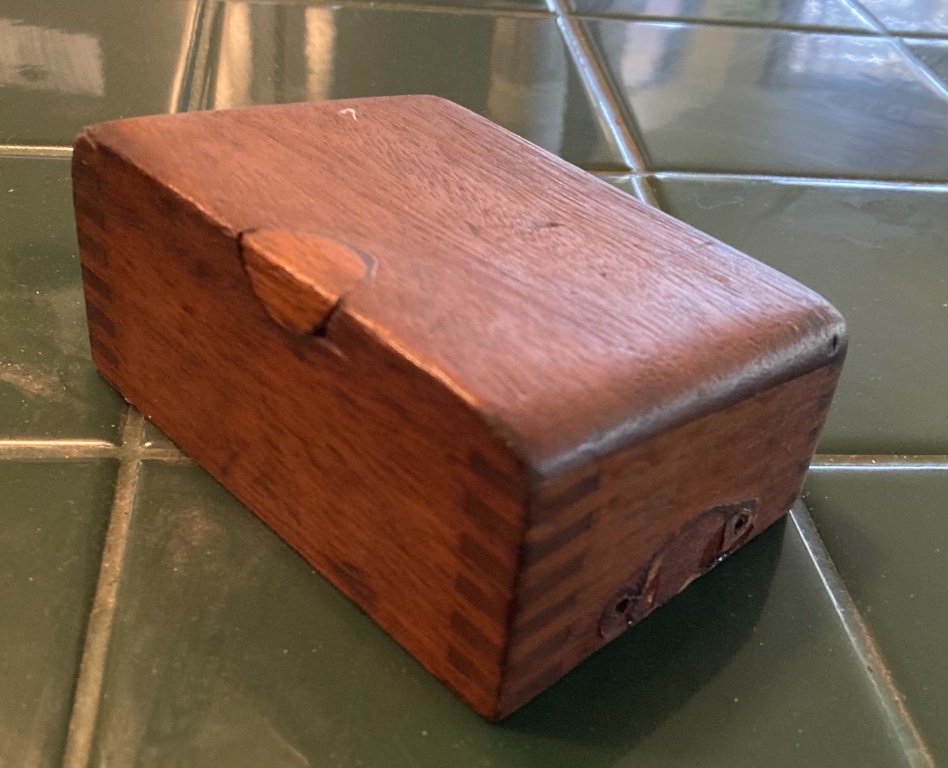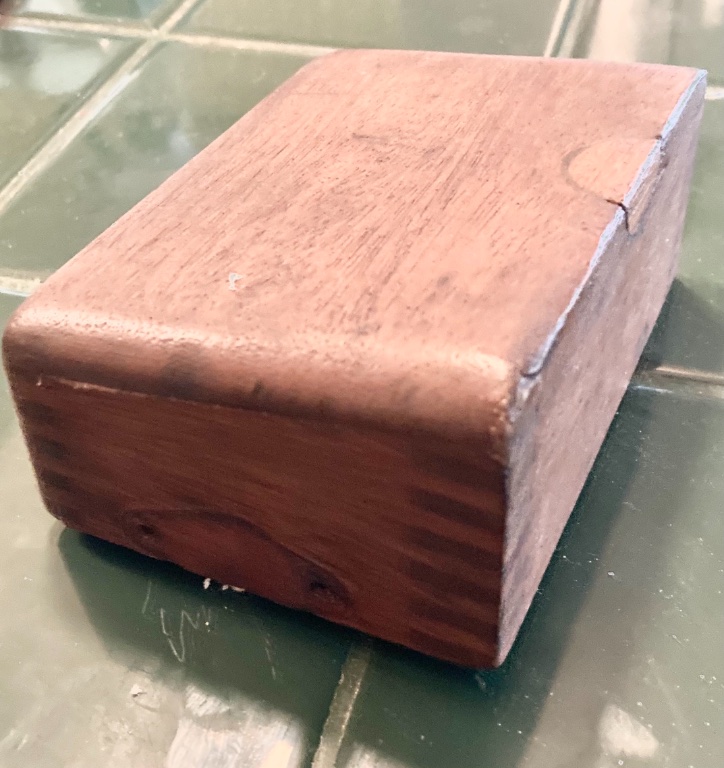 ....for wooden lid of a KW Master Vibrator. See pictures, including artistic repair to the front lid by my late daddy.