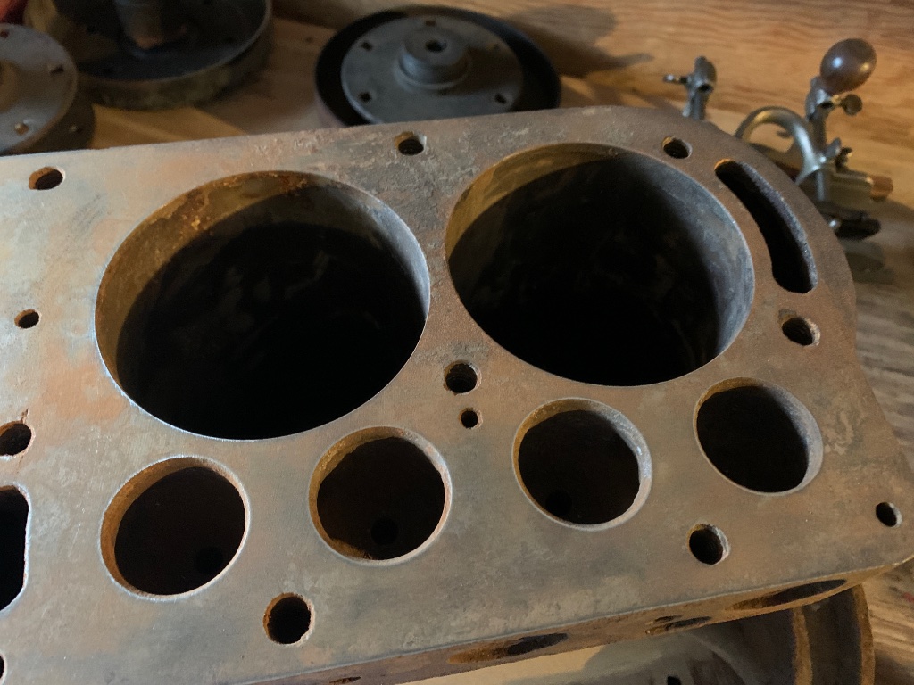 Surprisingly the babbitt still looks good going by the photos. Machine the exhaust/ intake port side a bit and repair the freeze plugs. I was going to say use JB Weld to fill in any pits anywhere else and it will be OK. I don’t know if you’ve mike’d the cylinders but the bores may be better than you think. I wonder if the cylinders are pitted like the rest of the block. Since it’s and early block makes it a good savable candidate.