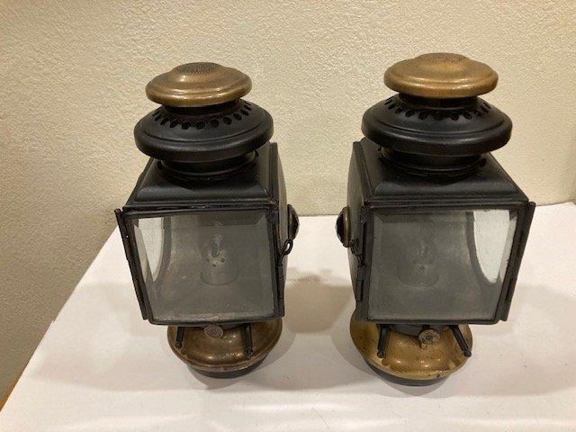 Pair of E&J sidelights, black and brass for 1913-14. Note the difference in the mounting brackets. $175.00+$25.00 shipping. Check or money order. Email me through this site.