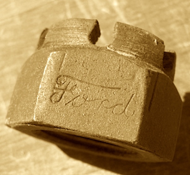 Like many parts on the Ford, beginning in 1919 Ford strived to mark parts to distance from 'aftermarket' parts, that may not do the job. Even those simple parts like castle nuts got with the program!