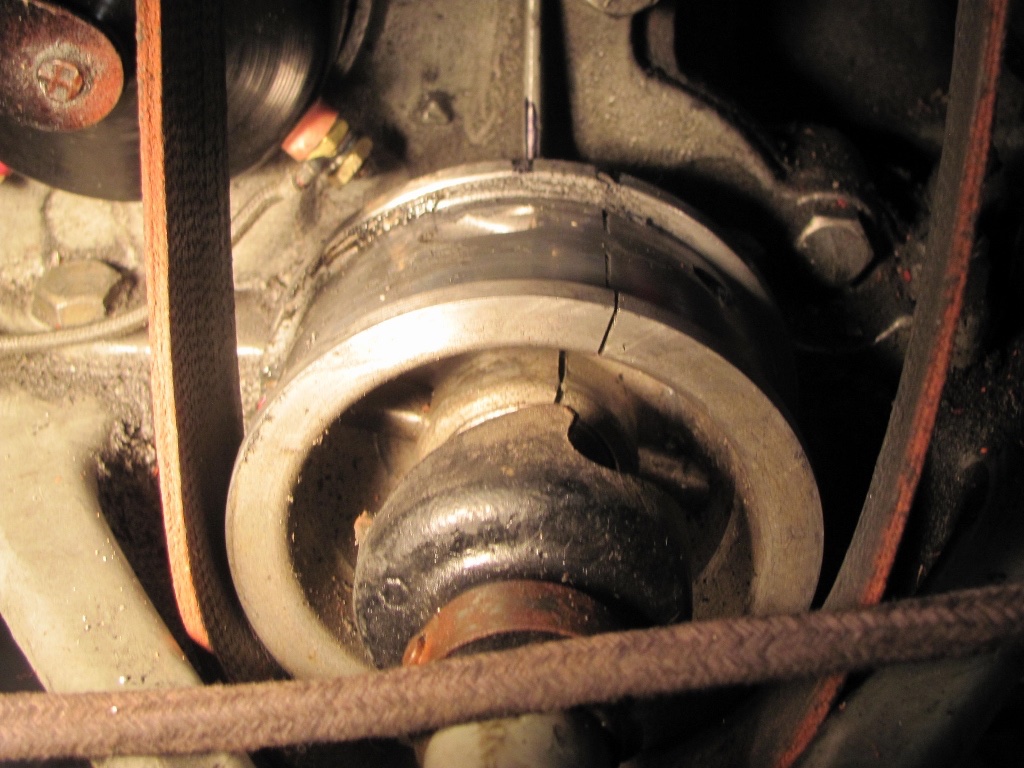 6. Adjust the fan pulley to have the belt just firm, not tight on the pulley, push the fan with the fingers and it should slip with a few pounds of force. Check and adjust after 50 miles, as belts can stretch.