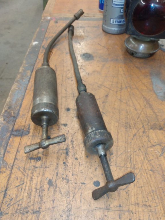 Alemite lubricator pat. 1919.the big one still pushes old grease. Has braided lines on them. Use them or hang em on the wall. 20.00 for the small one, 25.00 for the bigger, plus shipping. ctleonard64@gmail.com