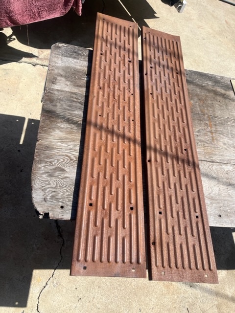 Pretty good pair of 1910 running boards. These are pretty solid, a few extra holes that they acquired over the years. $200.00 plus postage. Kdmks AT att.net.