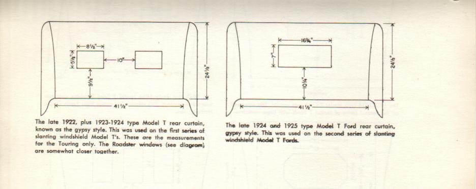I am trying to help someone put a new top on a 1925 Touring T, but have no detailed instructions. We have the straps installed, but when we tried to do a fit-check of the top, the middle bows collapsed due to its weight. What holds the top from collapsing? Finally, what is the distance from the bottom of the two windows to the body where you tack the the back curtain? Thanks, take care.