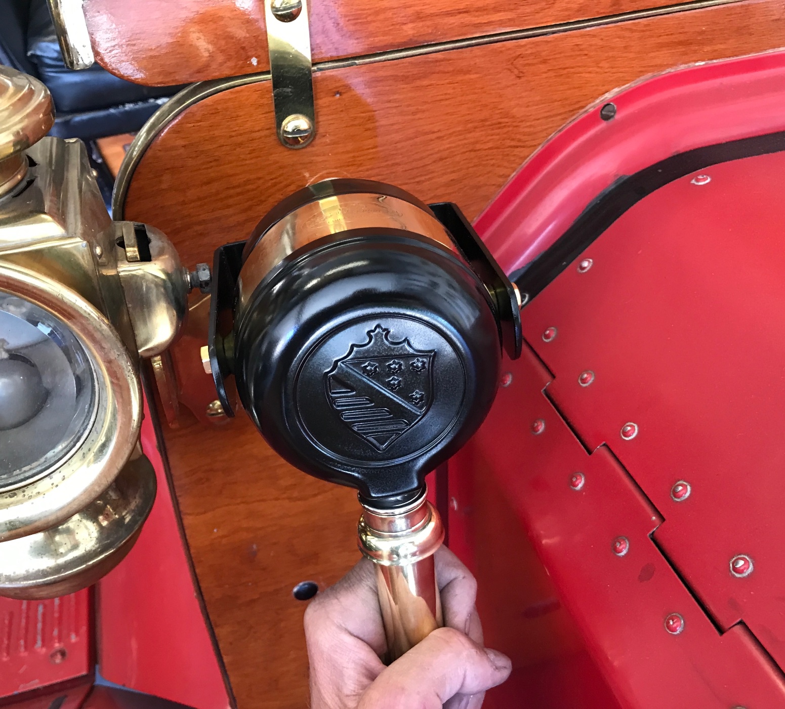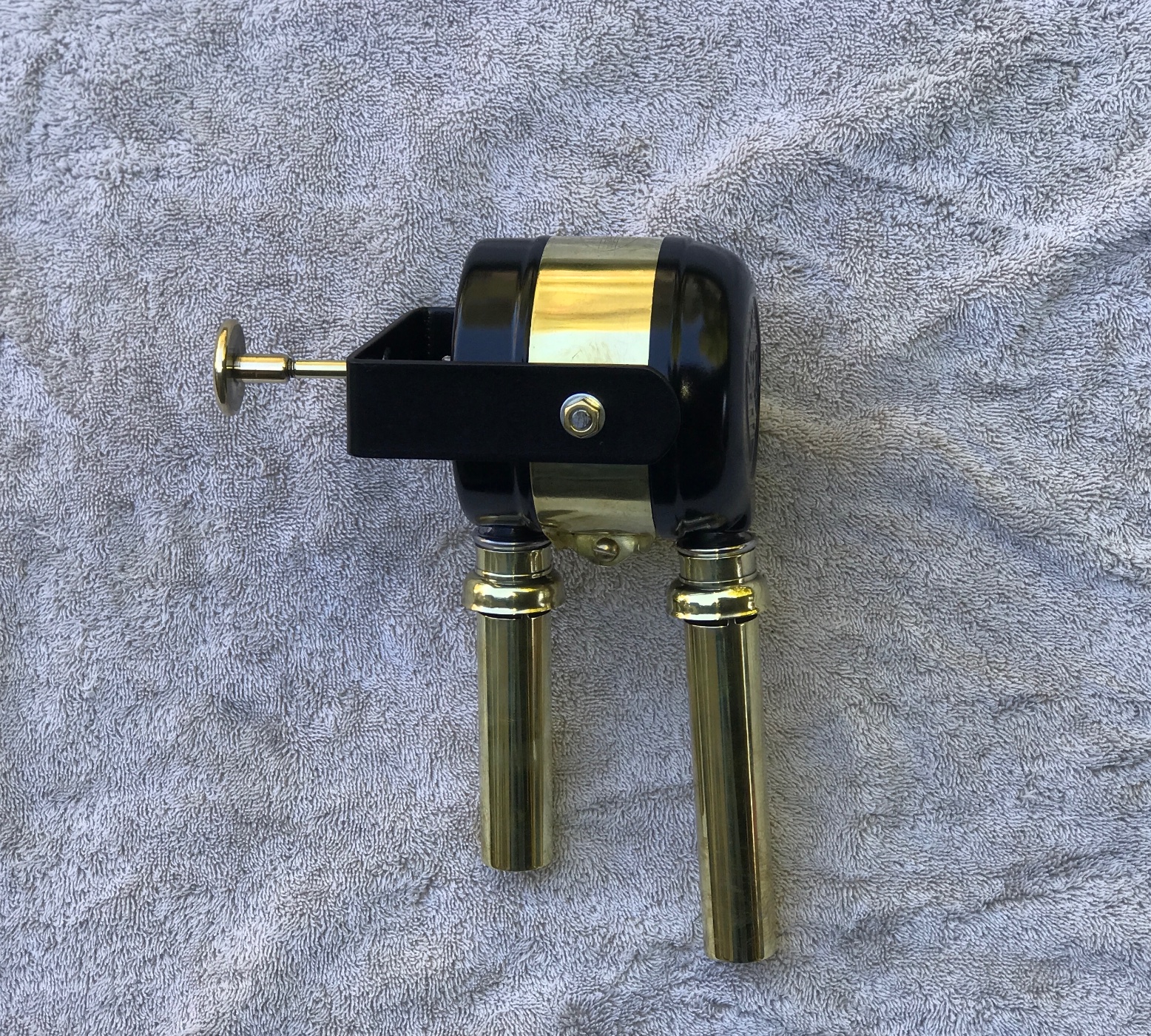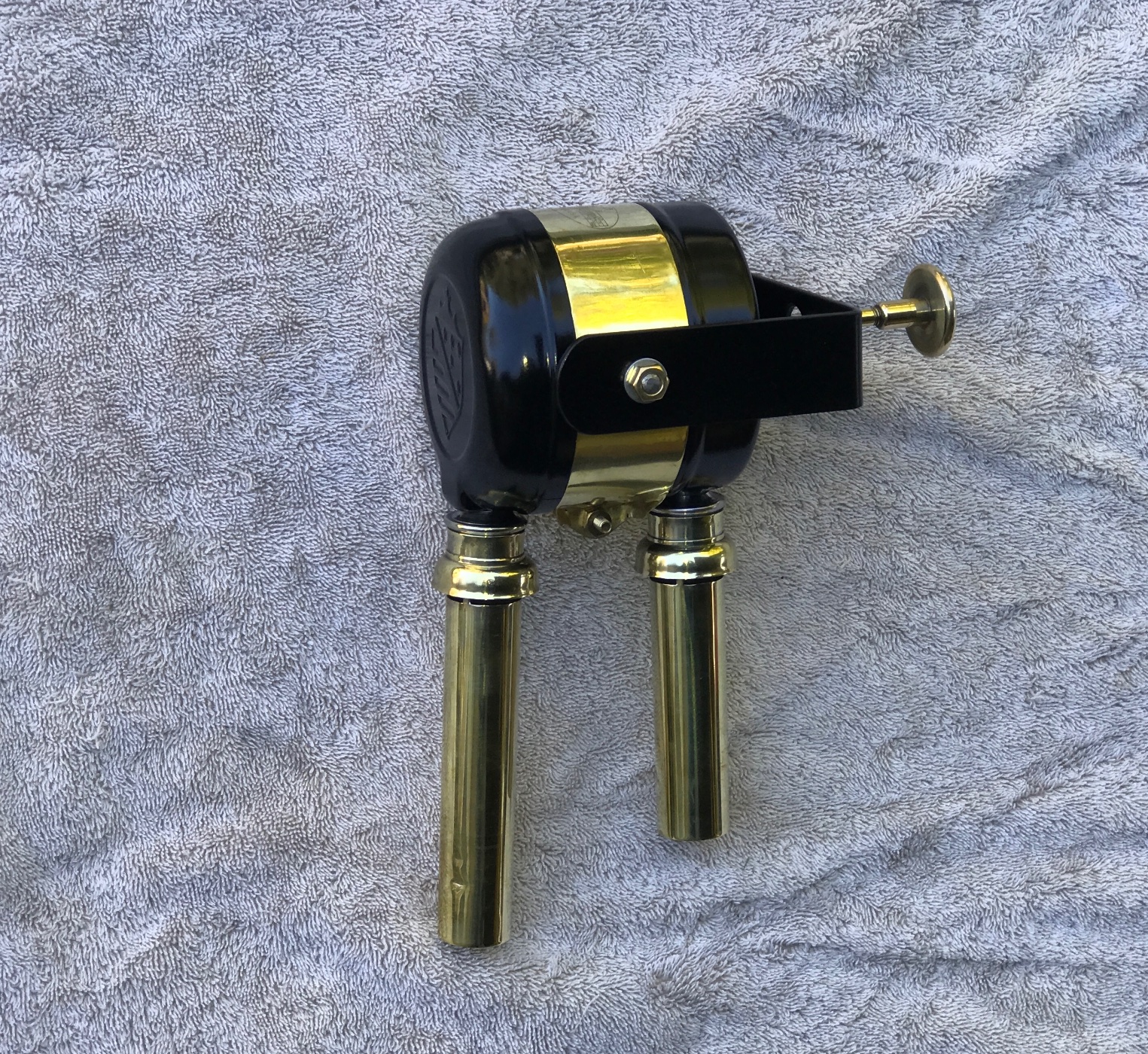 Here is an original very rare early Doray Cuckoo Horn. It was made by the Do-Ray Lamp Company, which is interesting because they were known for safety lights and reflectors. This model is early, with a pat pending stamp. It has a removable mounting bracket. Later versions had a fixed mounting bracket. It was designed to mount to the outside of the dash, with a knob and shaft that extended to the drivers side of dash. When the knob was pulled, it emitted a loud “CUCKOO! “ sound just like a cuckoo clock. It is in excellent condition, nice polished brass flutes and body bracket. One flute has two minor dings. Nice satin paint. Works great when knob is pulled. Very rare and hard to find, perfect to tickle the ladies at the next meet or to tell other drivers what you think of them. 425.00 shipped US.
