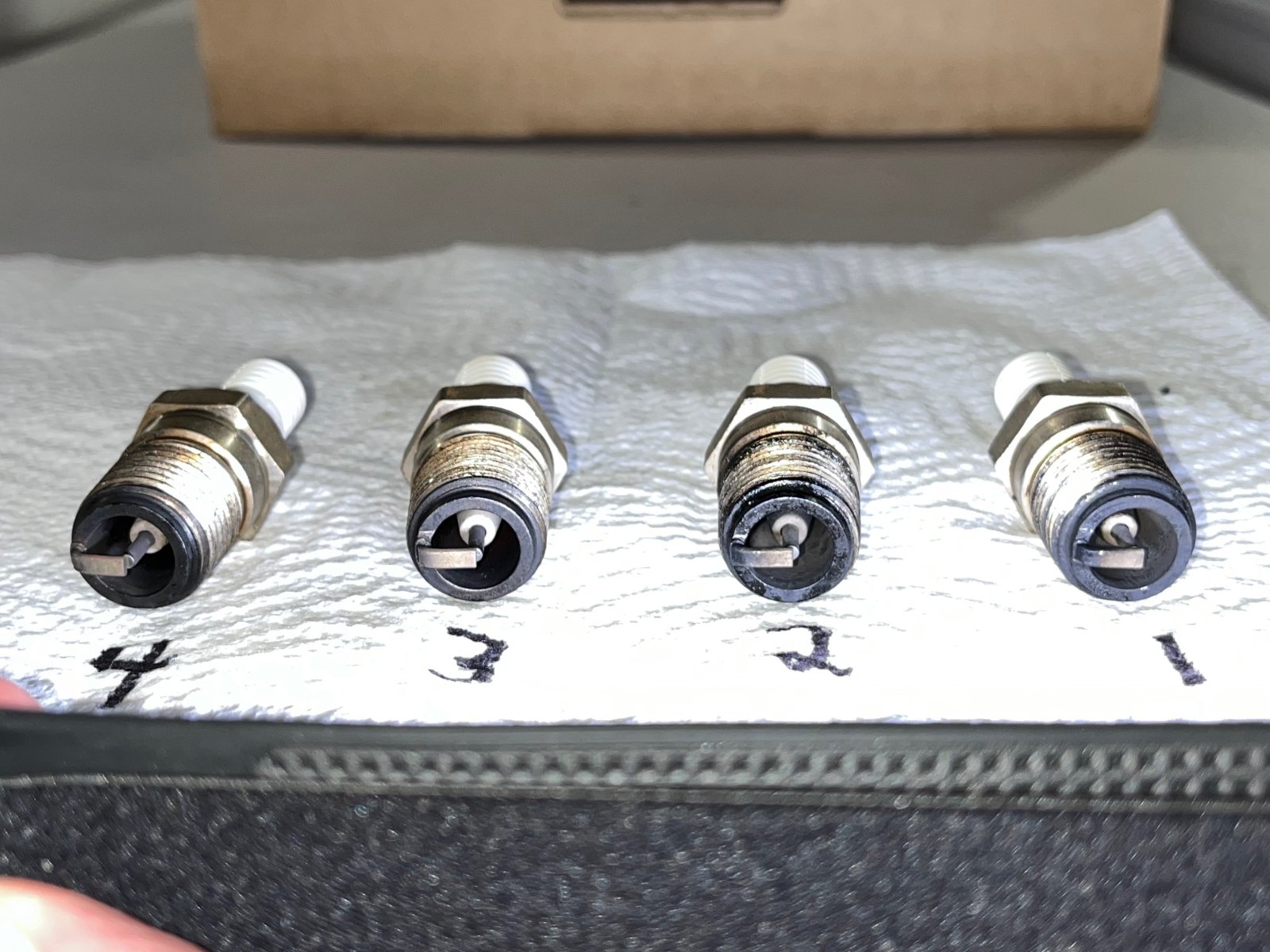 After that check, I removed the spark plugs and found what is shown in the attached photos. Surprised to see the difference between plugs 1,2 and 3,4.