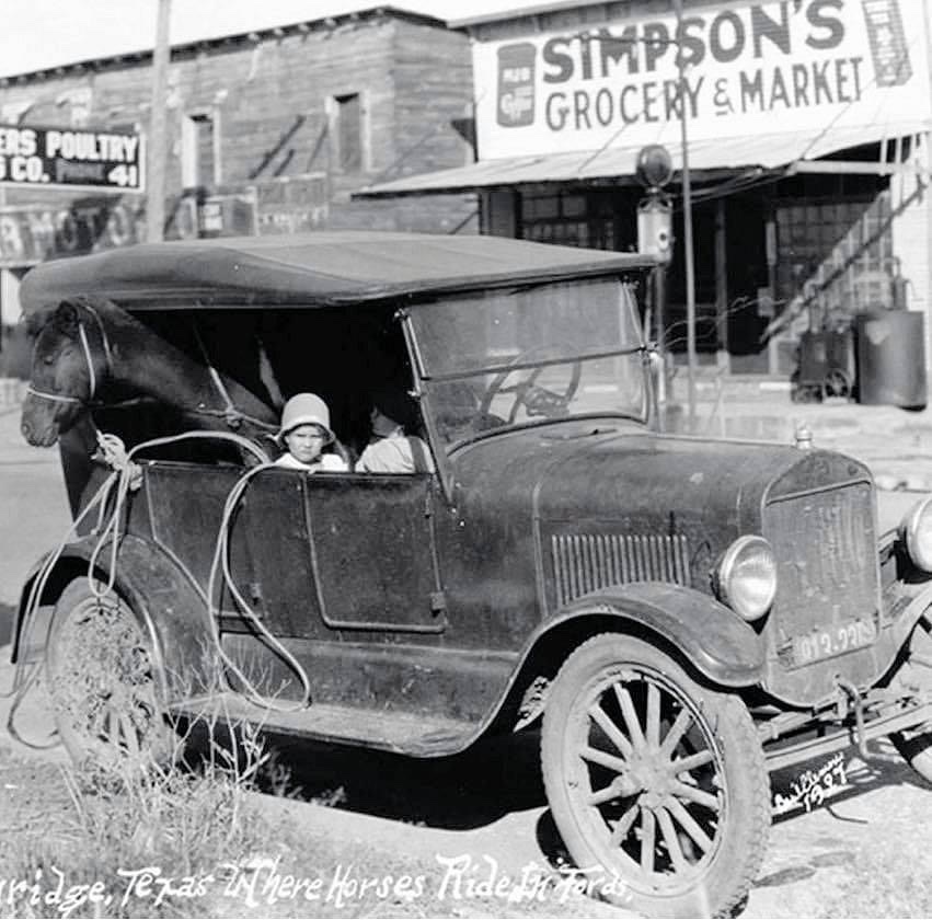 The caption is fun : "Down in Breckenridge, Texas the horses ride in Fords".