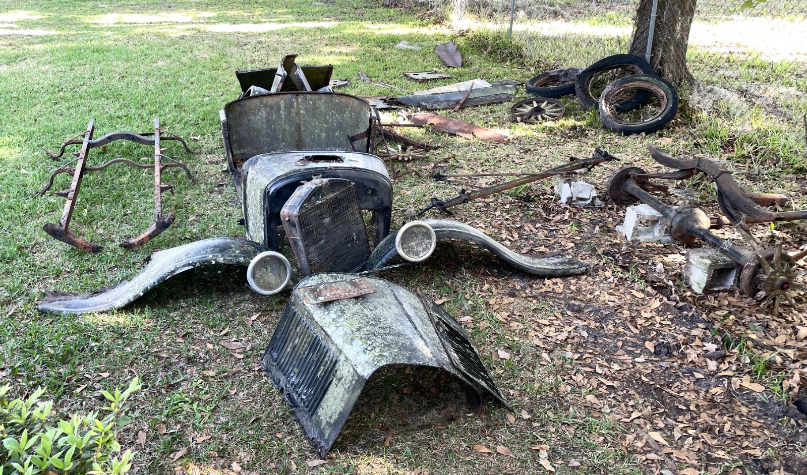 Did get the engine out and was put to use, but the rest of the rusted out , with window screen backed Bondo patches in all the sheet metal , sad ‘27 touring, became Yard Art.