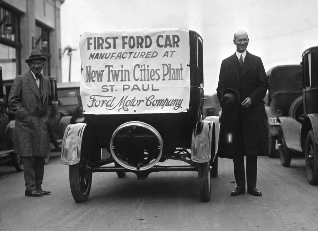 OLD PHOTO - FIRST FORD CAR MANUFACTURED AT NEW TWIN CITIES PLANT ST. PAUL