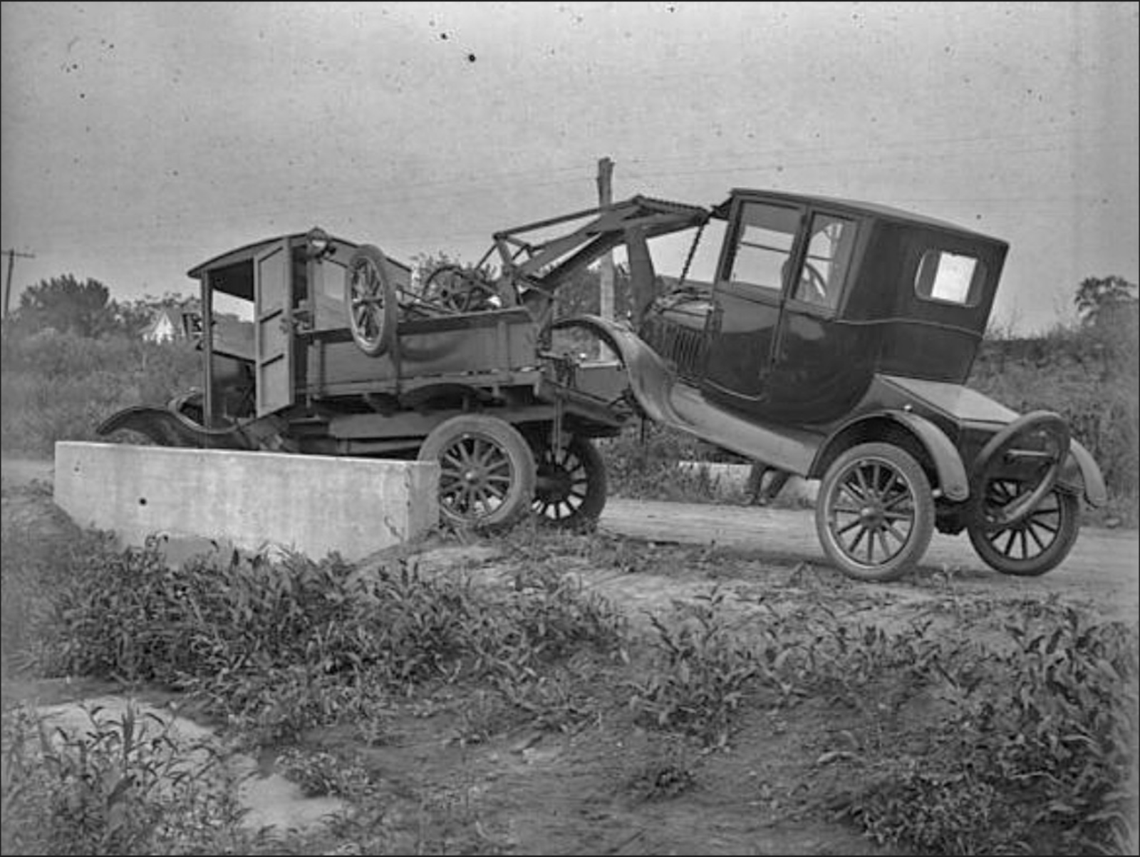 If that’s not a staged photo it goes to show drivers in those days drivers did what they had to do to keep from getting run off the road by another driver just as today. He surely wasn’t going more than 35-40 MPH. If that’s what actually happened!