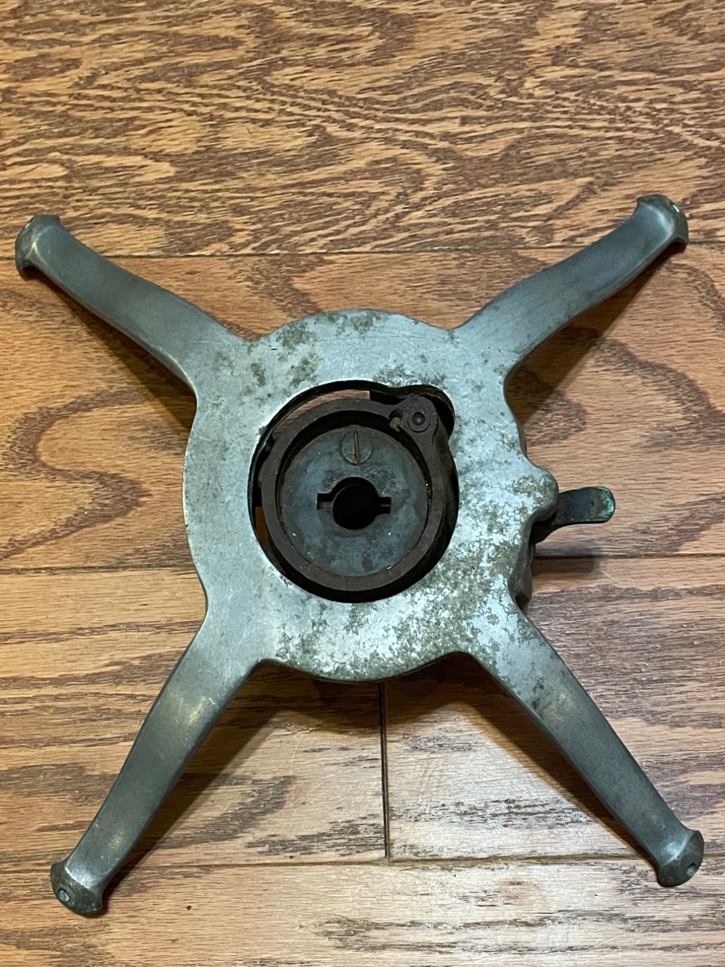The following pictures are of a fatman steering wheel spider. I’ve never seen this one before and I’m trying to identify the maker or any literature. It is a locking style & flip over style. I do not have a key, currently it is in the locked for steering but I suppose with the lock turned it would free wheel. From tab to tab across is 15 1/4 inch. Your help would definitely be appreciated.