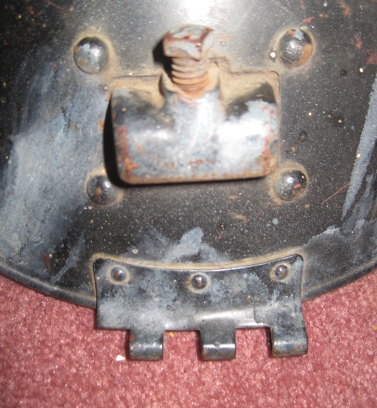 Free (You pay Shipping): One pair steel headlight buckets, probably ca. 1913 - 1917, early Nickel-Era. Diameter is 9", and the brackets fit a fork that is approx 7" fork spacing. All I have are the buckets, no rims, reflectors, lenses or bulb sockets for these. The hinges and brackets look like carry-overs from earlier brass carbide lights, which is why I think they are pre-1920, if not earlier. If you have a pair of these same lights that are rusted or badly dented, but otherwise usable, you are in luck. You pay shipping and they're yours.