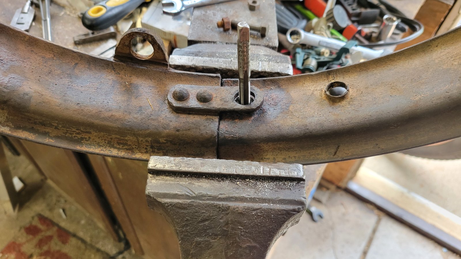 This rim is missing the latch bolt. It looks to be a 5/16" x 24 tpi thread. Does it just use a short bolt and washer?