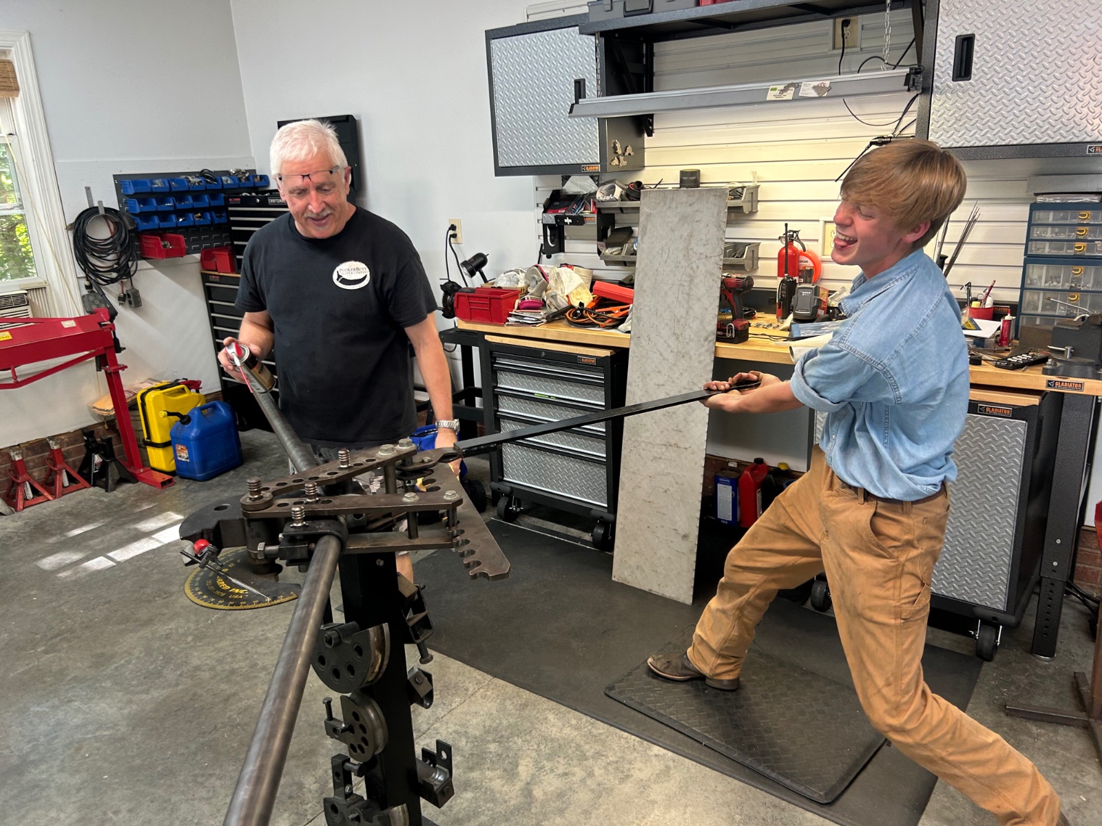 The speedster has been accepted to The Race of the Gentlemen 2025. The race requires a roll bar so Luke, with the help of a great teacher, was able to make a custom roll bar (75% so far) that will be mounted to the frame rails. It will have a couple gussets & braces, then will be fully tig welded.