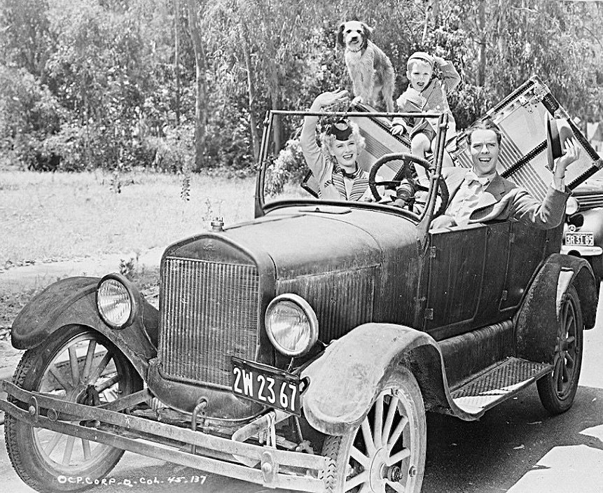 The photo looks like a “still” from some movie. Movie cars often had the windshield glass removed to eliminate reflections and glare while filming. By late 30s, Ts were considered “funny old cars”, emblematic of failure, poverty or “country hicks” and good for a laugh.