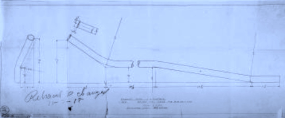 Later mufflers, the majority of production from somewhere around 1919 onward, had longer head-pipes which the muffler was assembled onto the head-pipe itself. They bolted with one bolt at the rear of the frame rail as the longer head-pipe provided the front support to the muffler.