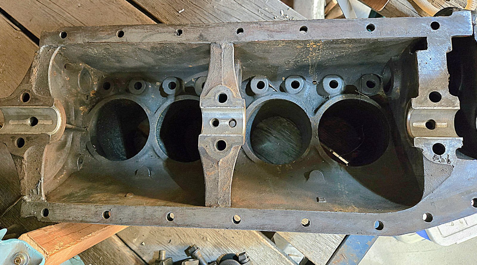 Deck has small crack professionally repaired. Former owner advised slight water weep on adjacent bolt holes. Bore measures 3.8" approximately. Main bearings babbit is new. No main caps, however have unbabbited caps available.