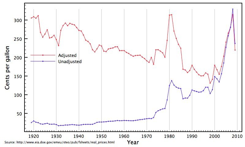 The red line is "adjusted" for inflation rate in 2010 not Today