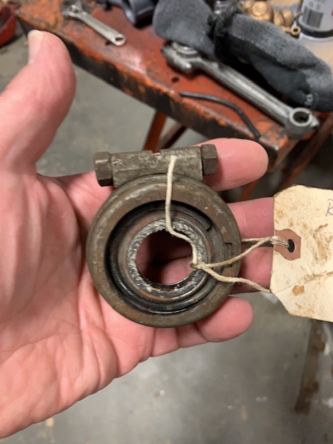 Started tearing down the rear axle & found this on the left axle end. There was lots of grease leaking. Whatever it is, it looks like it was made to do something. Maybe a rear seal? Any ideas?