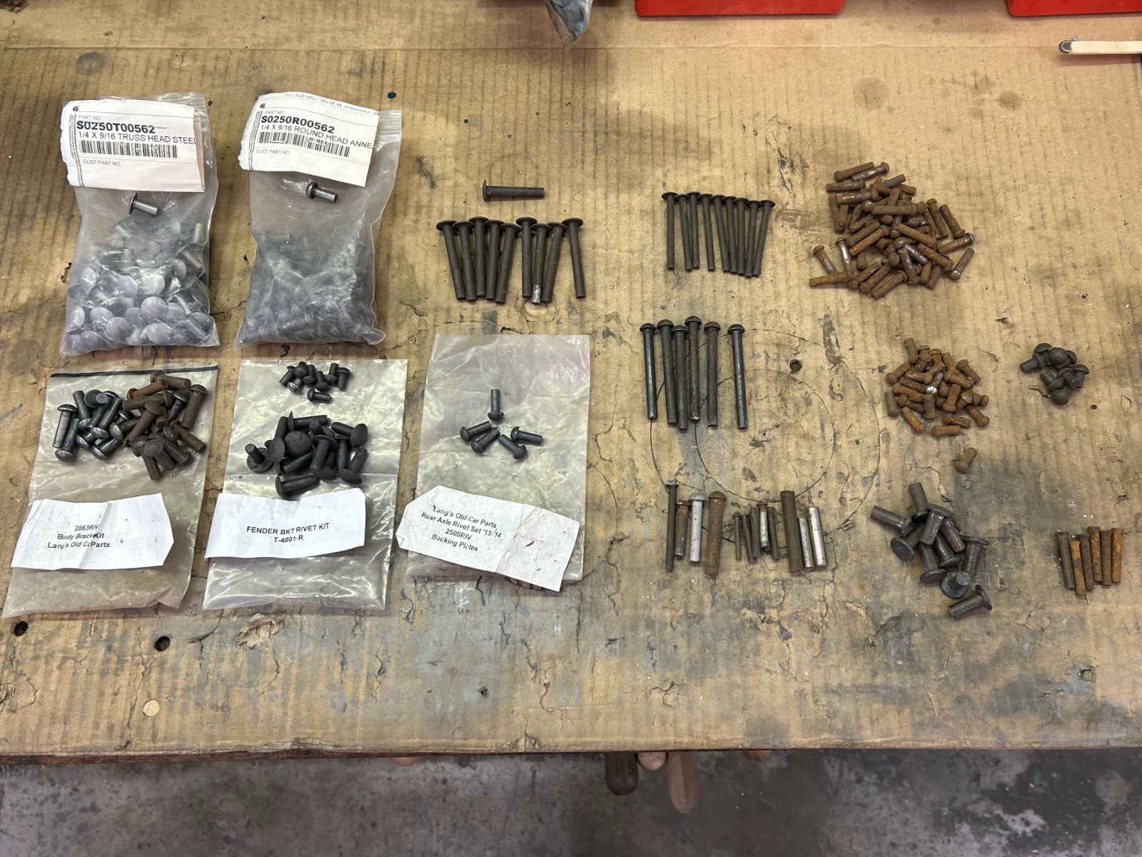Nice assortment of rivets, all steel and some NOS door pins! $50.00 with shipping.