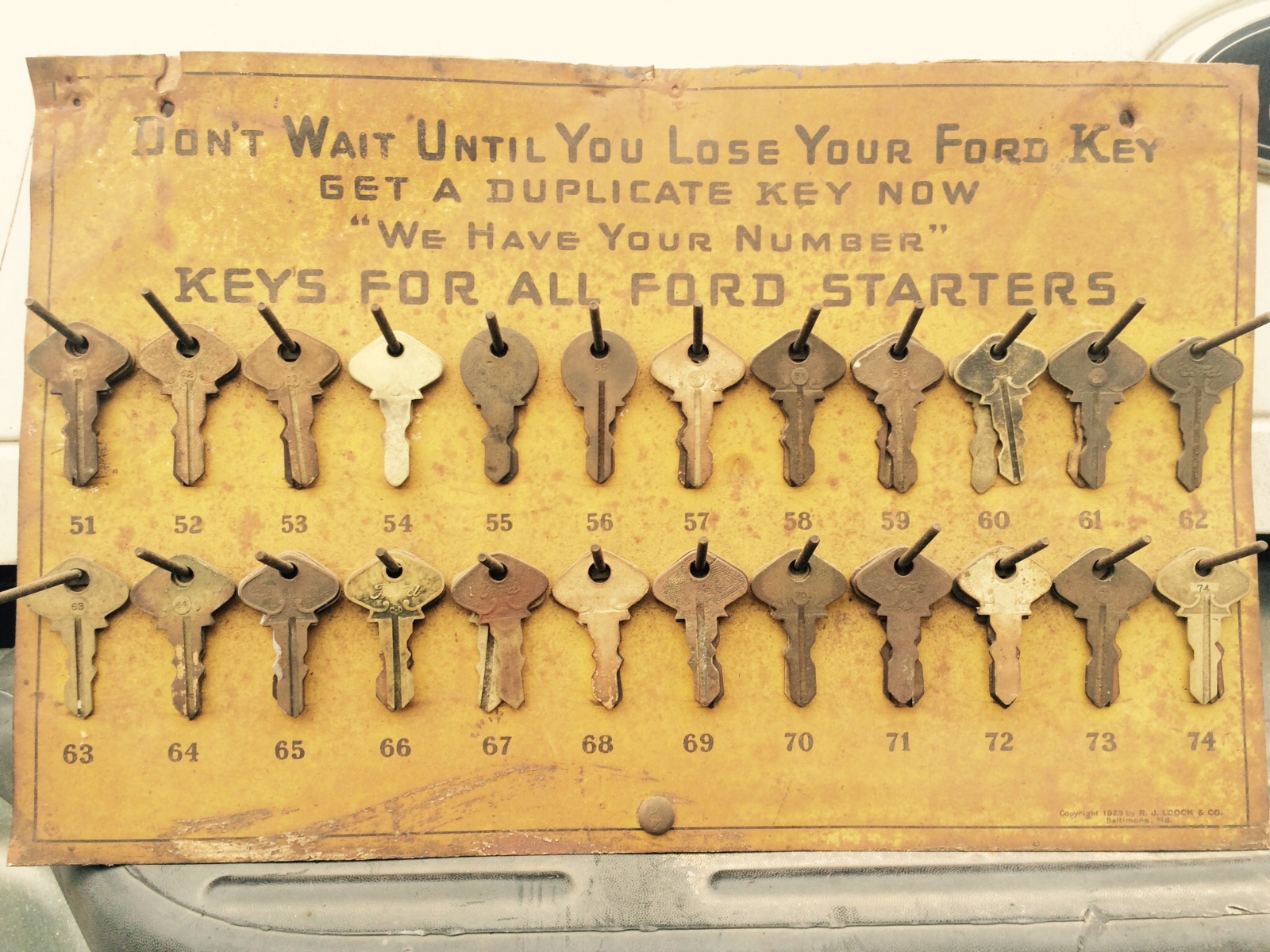 A dozen or more years ago I paid $500 for a NOS Ford keyboard with about three or four keys on each hook. I have no regrets that I did this. Since that time, I've filled each hook to the end. I prefer the solid nickel keys, but have a few of the brass ones laying around too.